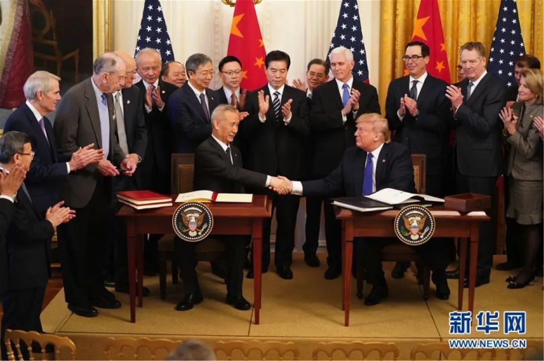 2019年12月中美第一阶段贸易协议文本内容达成一致,2020年1月签署。