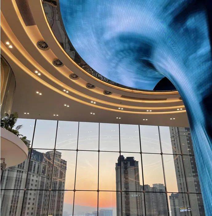 在室内空间打造中,吾悦广场采用“星际穿越”的概念,首先以玻璃幕墙和LED科技奠定项目的时尚基调,同时变换多种场景,别出心裁地打造了以空间艺术承载自然韵律的“生命之树”,以潮流科技与瑰丽色彩交融碰撞的“虫洞”,充满温馨感与趣味性的“城市会客厅”,让消费者漫步其中,尽可享受到移步换景的视觉盛宴。