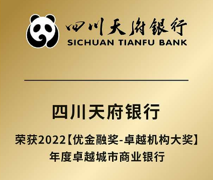 2022年12月,四川天府银行凭借年度市场表现与行业影响力,在上海报业集团|界面新闻举办的2022【优金融奖】颁奖典礼上斩获“年度卓越城市商业银行”这一大奖。据悉,此次金融业年度评选竞争激烈,四川天府银行能够获得该奖项,既是相关机构对其成就的表彰,也是对其服务的高度认可。