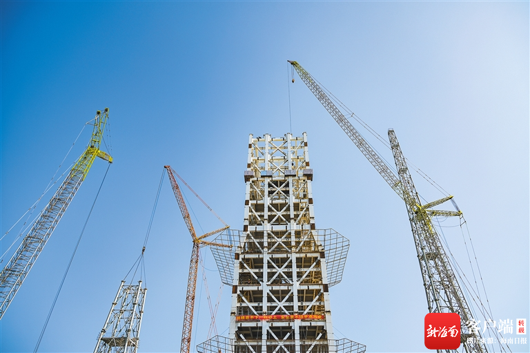 近日,位于文昌市的海南商业航天发射场项目工地,百吨级履带吊、汽车吊等设备轰鸣作业,400多名技术工人紧张施工。