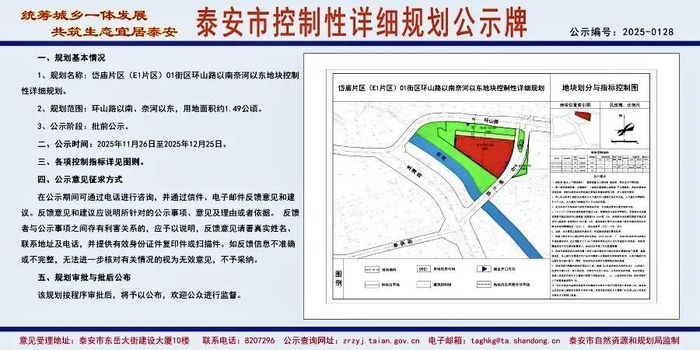 11月26日,泰安市自然资源和规划局发布规划公示,详情如下: